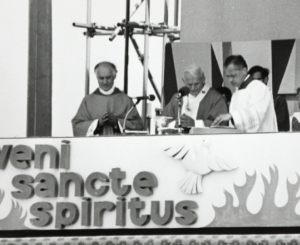 Those of you who remember John Paul II’s visit to Coventry in 1982 will have your own memories of the day. Whether you were there in person, or watched it on television, it was a momentous occasion. Here at St Gerard’s, we have our own very piece of history from that day, because the alter, well half of it at least, has graced our church for the last 30 years. It continues to be the focus of all of our masses and we feel a great sense of pride that this spiritual and historic altar forms the centre piece of our church.